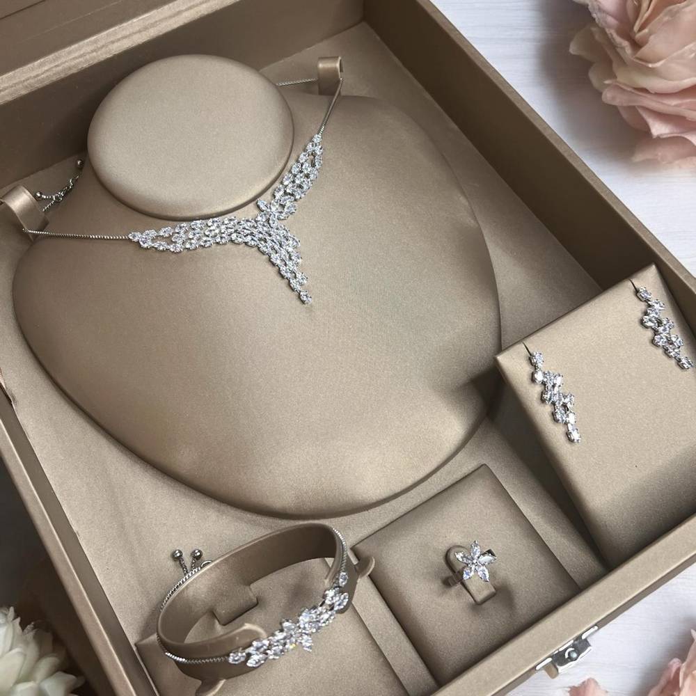 طقم زيركون مكون من 4 قطع في علبة فاخرة